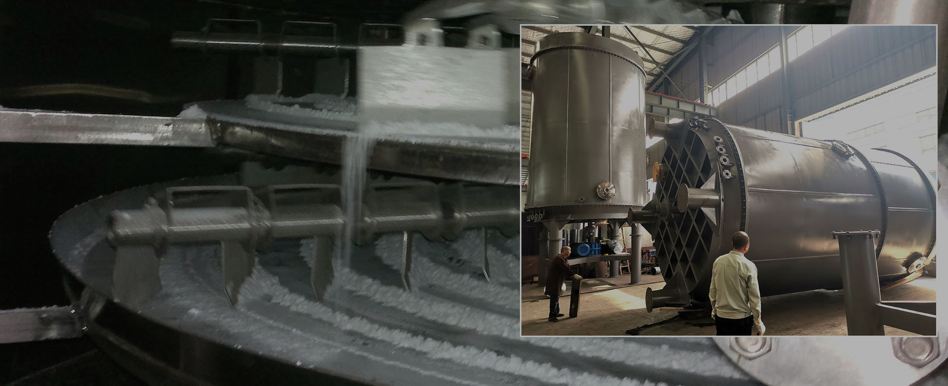 一批楔形空心桨叶干燥机制作中,工人和技术人员在各自的岗位上忙碌着,佩戴防护眼镜,确保生产过程中的安全。按照工艺流程,一步步将桨叶、轴承、密封件等部件组装在一起,形成完整的桨叶干燥机。在组装过程中,会有技术人员进行…